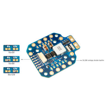 - Supports wide input range (2–12S LiPo, 6–60 V DC) with built-in current sensing.