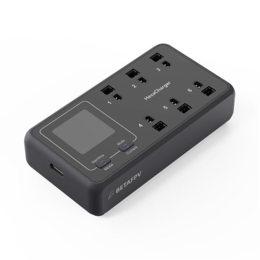 BETAFPV HexaCharger 1S is a compact, all-in-one charging hub designed for whoop pilots who want to spend more time flying and less time charging. It allows simultaneous charging of six 1S batteries with clear visual monitoring and simple control. With fast PD 3.0 support and built-in safety systems, it delivers reliable and efficient battery management at home or on the go.