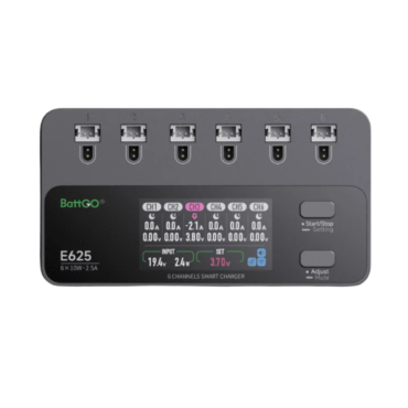ISDT E625 je kompaktní nabíječka s více porty určená pro 1S LiPo a LiHv baterie, které se běžně používají v FPV dronách a mikro kvadrokoptérách. Nabízí rovnováhu mezi přenosností a funkčností, což ji činí ideální pro hobbyisty, kteří hledají lehké řešení pro současné nabíjení více baterií.