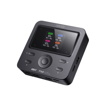 ISDT F160 je univerzální čtyřkanálová nabíječka určená pro efektivní nabíjení a vybíjení široké škály typů baterií. Díky kompaktnímu designu a vysokému nabíjecímu výkonu je vhodná pro hobbyisty, piloty dronů a nadšence RC, kteří potřebují spolehlivé a simultánní řízení více baterií. Zvládá až čtyři baterie současně a obsahuje čtvrtý kanál se speciálním napěťovým rozsahem.