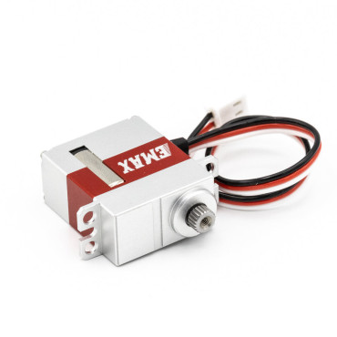Servo EMAX ES9256HV Servo EMAX ES9256HV – a high-voltage digital servo with a coreless motor, dual bearings, and hardened aluminum gears, delivering fast 0.07 s/60° speed and 5.8 kg·cm torque, ideal for 450-class RC helicopters. Specification: Type: Swash / Rotor Tail Digital Servo Model: EMAX ES9256 Motor: 5-pole coreless Gears: 7075 aluminum, hard-anodized Potentiometer: High-precision NOBLE Bearings: Dual-bearing for durability Operating Voltage: 6.0-8.4V STD Direction: Counter clockwise/pulse traveling 1500 to 1900usec Stall Torque: 6.0V 4.2Kgf.cm; 8.4V 5.8Kgf.cm Operating Speed: 6.0V 0.09 Sec/60°at no load; 8.4V 0.07 Sec/60°at no load Plug: FUT/JR Dimensions: 23x12x26.5mm Weight: 20g Compatible: 450 Helicopters Package includes: 1 x ES9256HV Servo 1 x Servo arm