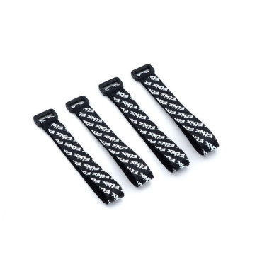 The Ethix Battery Straps (4pcs) are durable, lightweight LiPo straps featuring a stylish pattern, designed to securely hold larger batteries during flight.